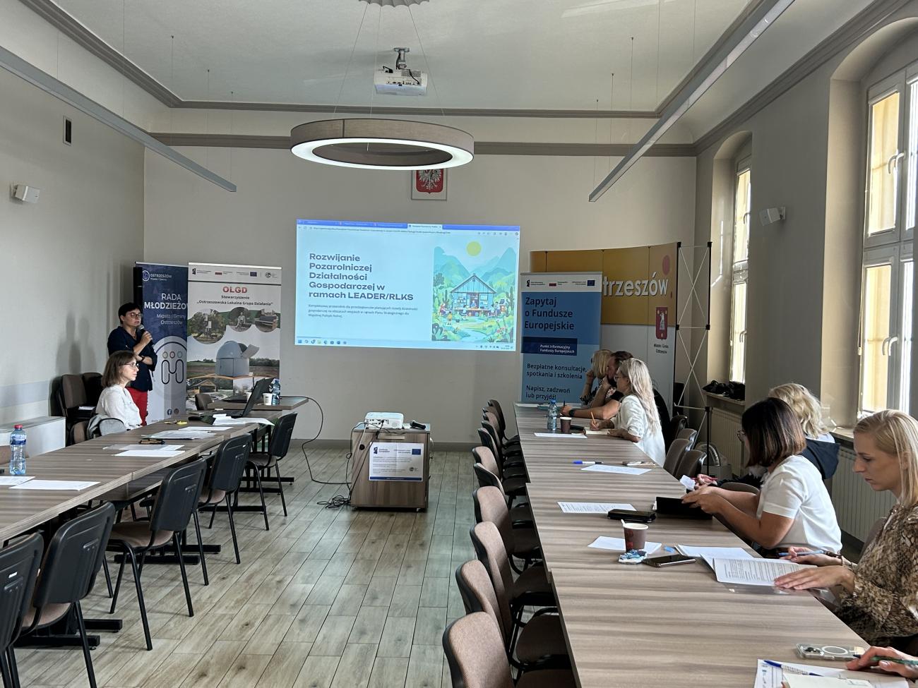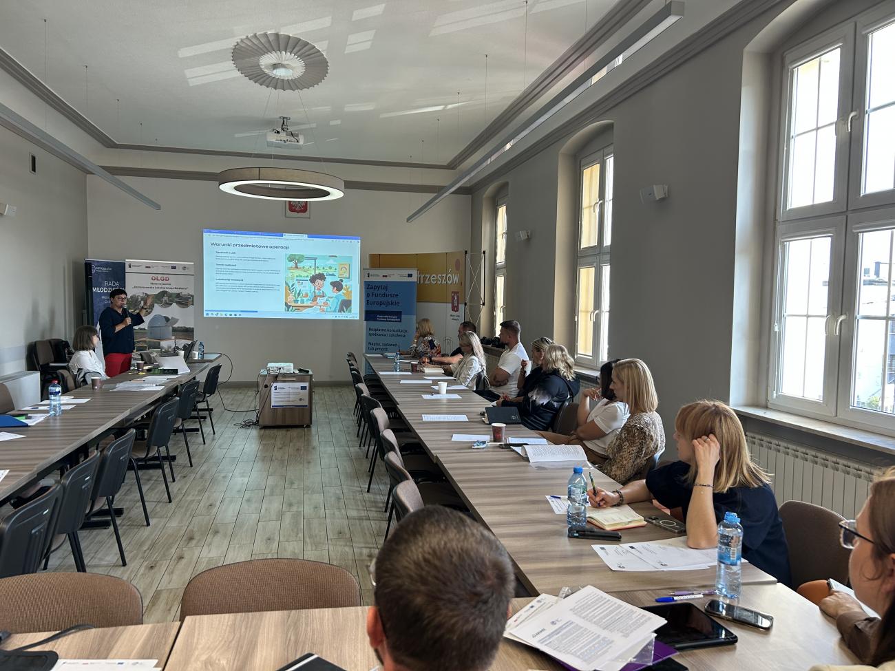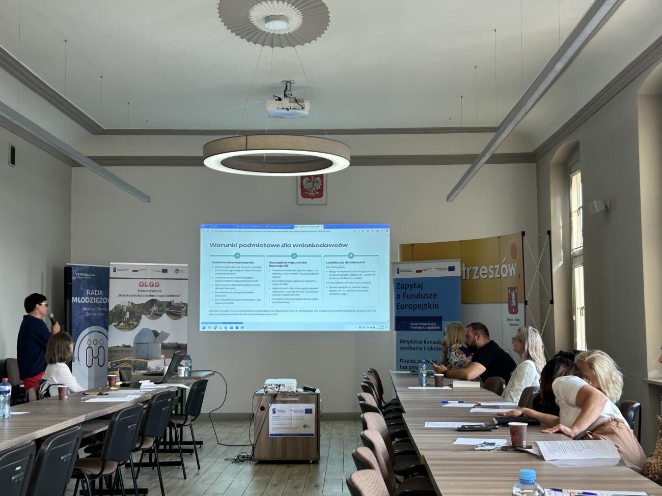Podczas szkolenia omówiono ogólne warunki przyznania pomocy, przedstawiono cele, przedsięwzięcia i wskaźniki zawarte w LSR Stowarzyszenia, przeanalizowano kryteria wyboru.