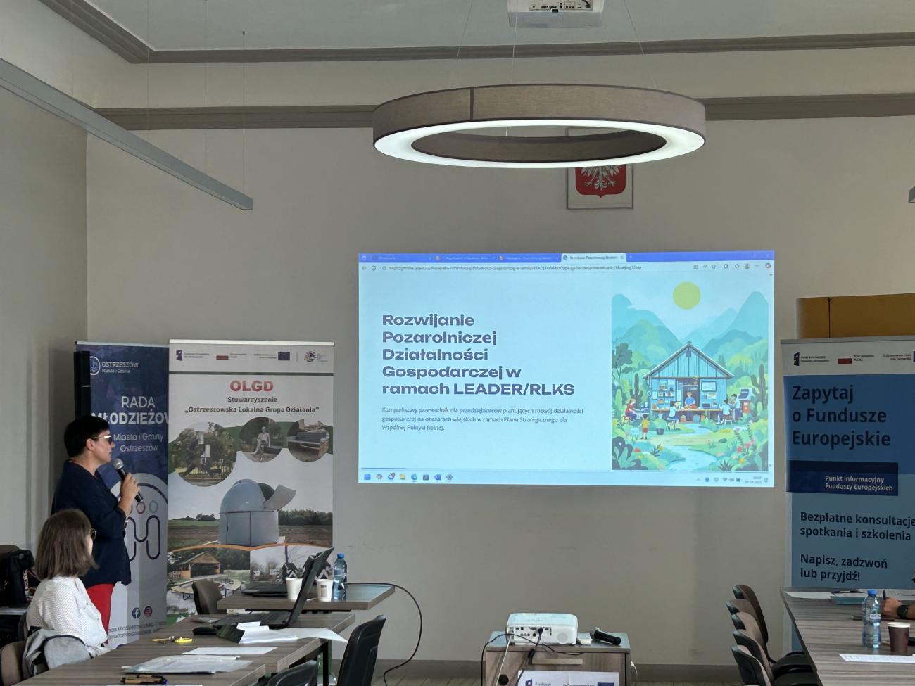 W dniu 10 września 2025 roku odbyło się spotkanie informacyjno-szkoleniowe organizowane przez Stowarzyszenie "Ostrzeszowska Lokalna Grupa Działania" dla potencjalnych wnioskodawców w ramach naboru nr 3/2025 (563 920). Spotkanie miało na celu poinformowanie potencjalnych beneficjentów o możliwościach uzyskania dofinansowania w ramach przedsięwzięcia z LSR: P.1.3, tj. Podejmowanie i rozwój działalności gospodarczej działającej w obszarze sportu i rekreacji (Rozwijanie). Uczestnicy mieli okazję dowiedzieć się m.in.: