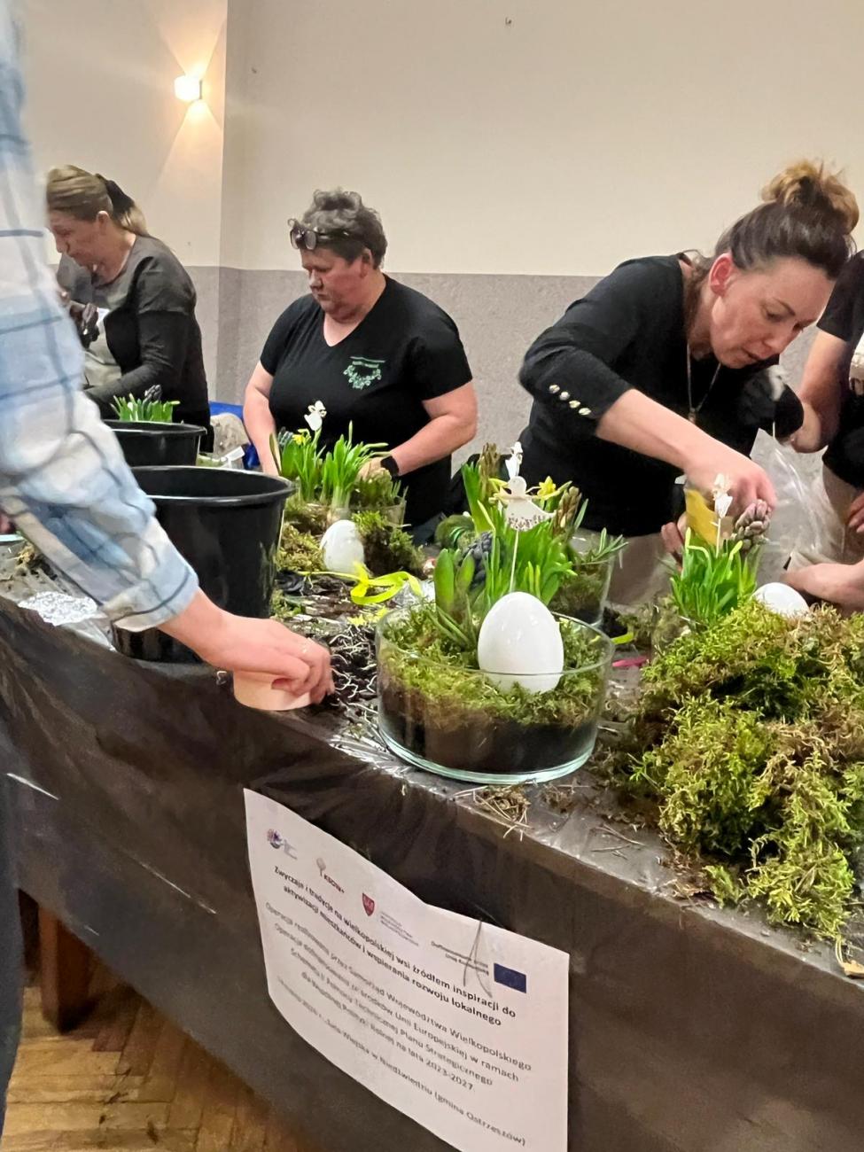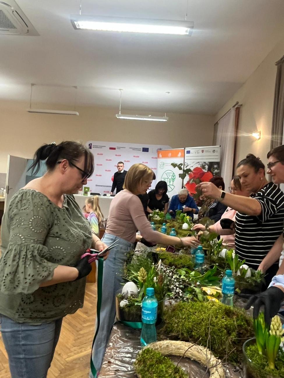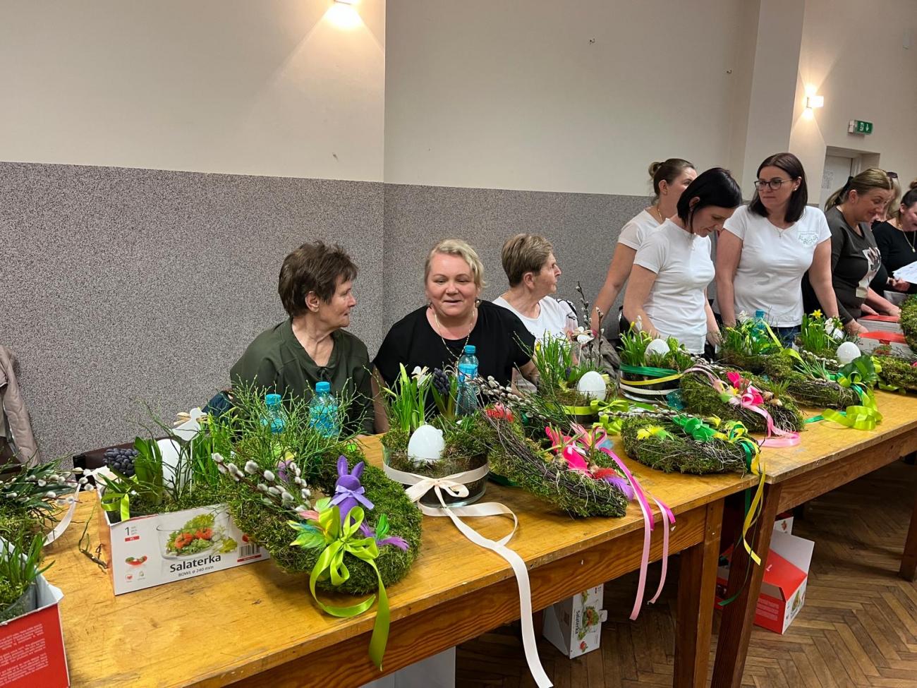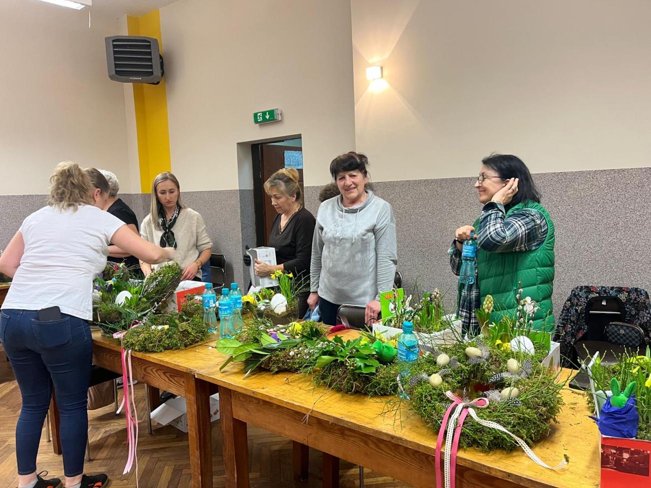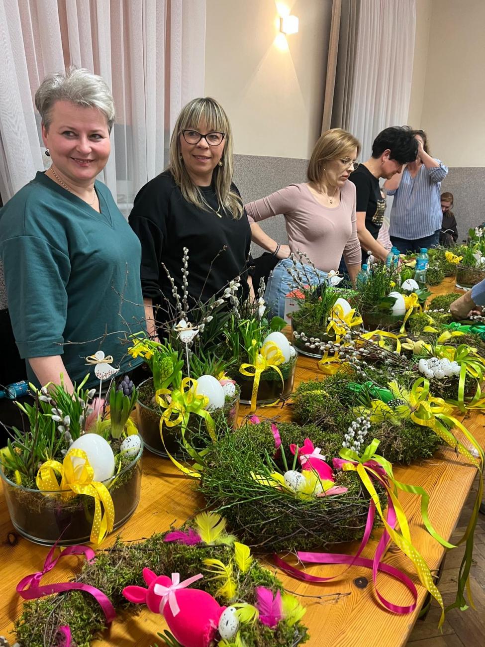 Podczas spotkania uczestnicy poznawali wielkanocne tradycje oraz własnoręcznie wykonywali świąteczne dekoracje. Powstały m.in. wianki wielkanocne na słomianej podstawie z mchem oraz wiosenno-wielkanocne kompozycje w szkle. Była to doskonała okazja do wspólnego spędzenia czasu, rozmów oraz pielęgnowania lokalnych zwyczajów i tradycji.