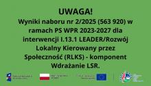 Stowarzyszenie ,,Ostrzeszowska Lokalna Grupa Działania'' informuje, że w dniu 12.11.2025 r. odbyło się Posiedzenie Rady SOLGD, podczas którego dokonano oceny i wyboru operacji złożonej w ramach naboru 3/2025 (563 920) w ramach PS WPR 2023-2027 dla interwencji I.13.1 LEADER/Rozwój Lokalny Kierowany przez Społeczność (RLKS) - komponent Wdrażanie LSR.