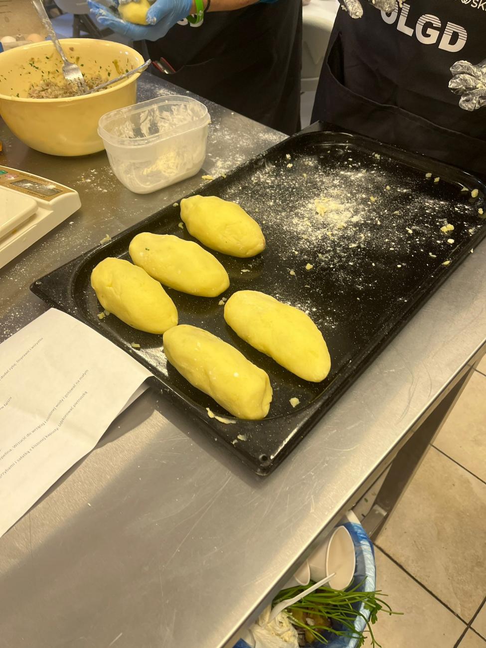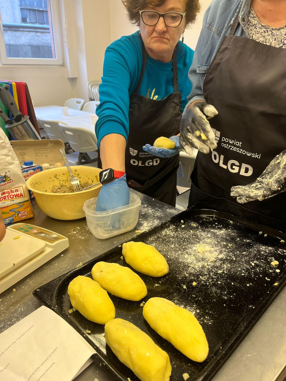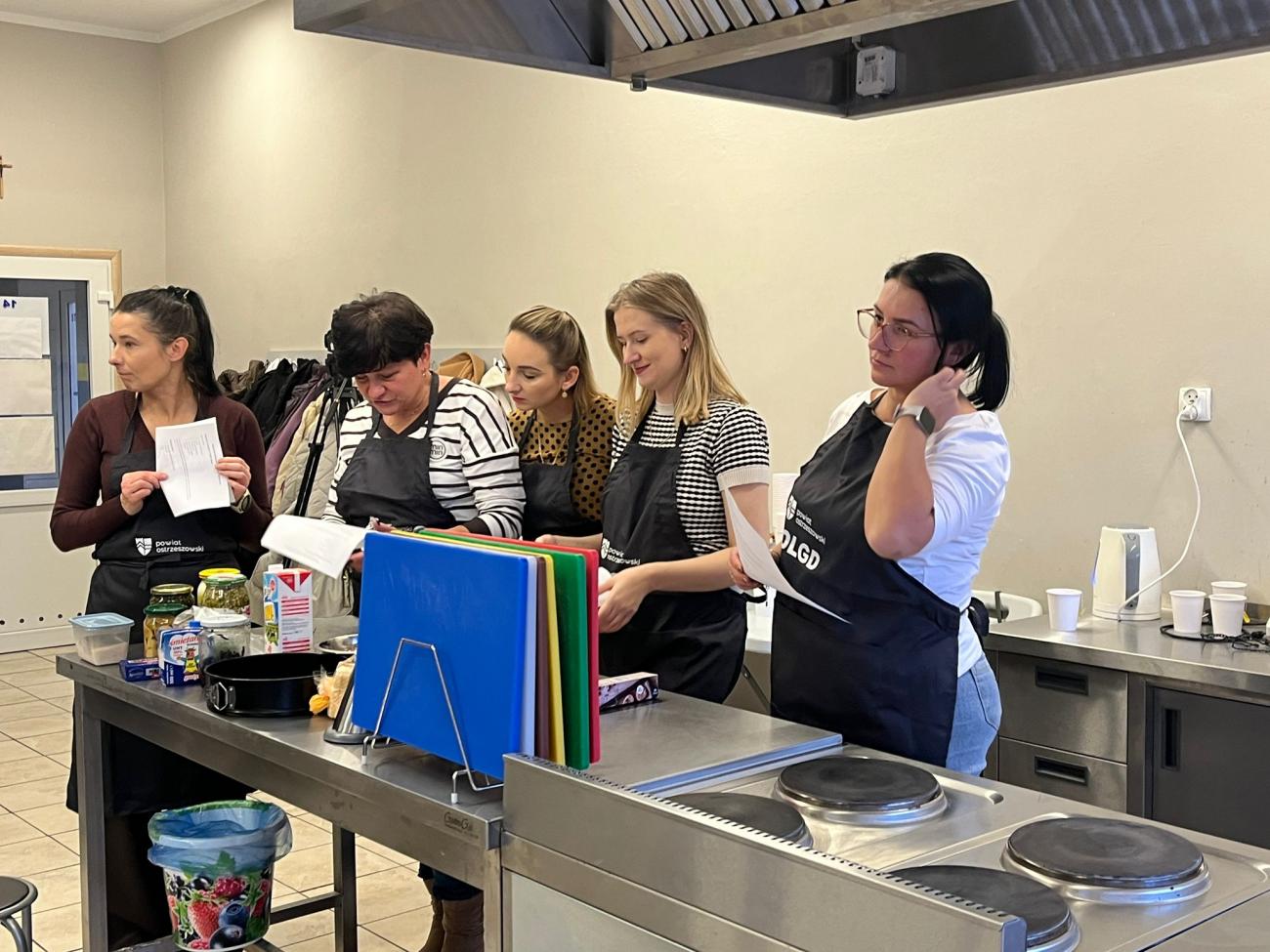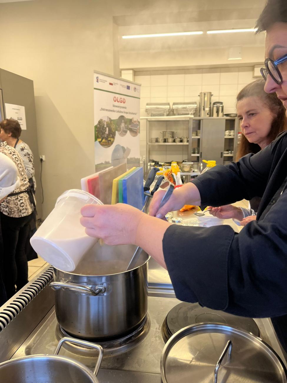 Piętnastoosobowa grupa uczestników przygotowywała tradycyjne potrawy wigilijne, poznając techniki kulinarne oraz lokalne świąteczne tradycje. Warsztaty przebiegły w twórczej atmosferze, sprzyjającej wspólnej pracy i wymianie doświadczeń.